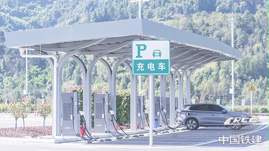 昆侖集團堅持“綠色、低碳、環?!备咚俟愤\營理念,在沿線高速服務區試點采用“自發自用,余電上網”模式,建設了重慶首個“光伏+充電樁”分布式光伏項目(彭柏龍 攝)